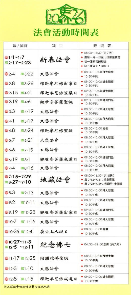 2026年法會活動時間表